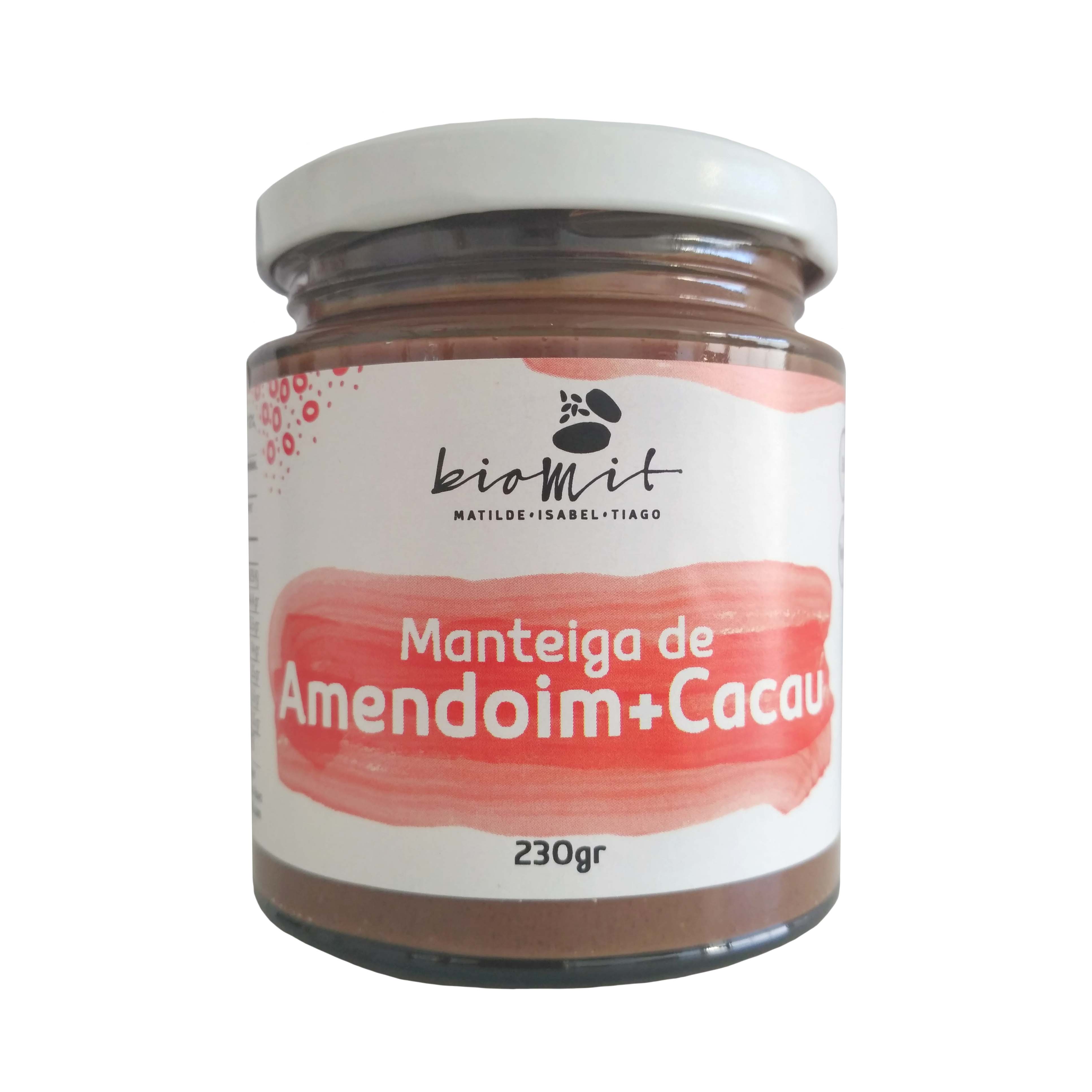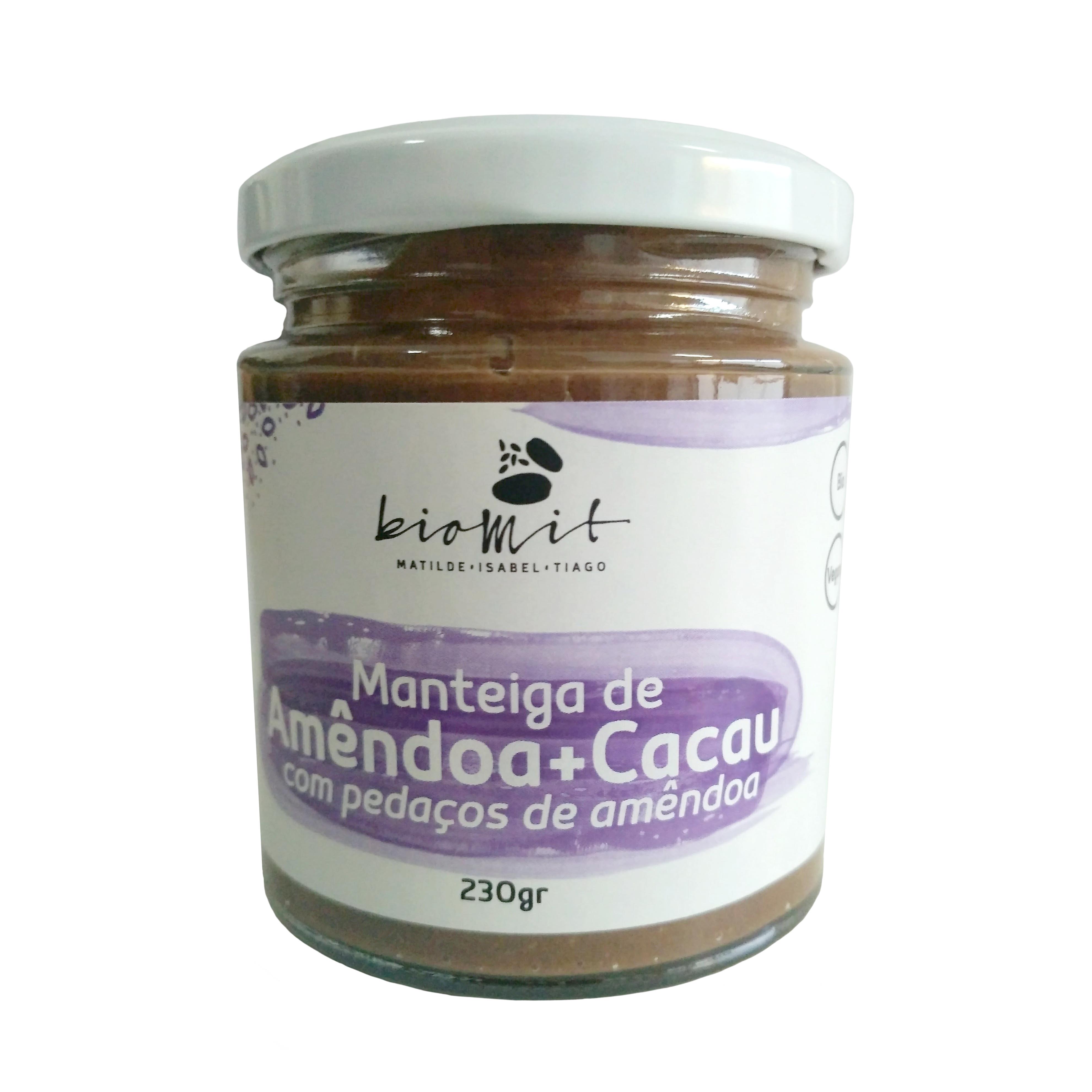 Amêndoa torrada, pasta de cacau crú e açúcar de coco. A conjugação da amêndoa torrada com a pasta de cacau e levemente adocicada pelo açúcar de coco, garante uma experiência sem igual. Experimente barrar no pão ou usar como topping em crepes.